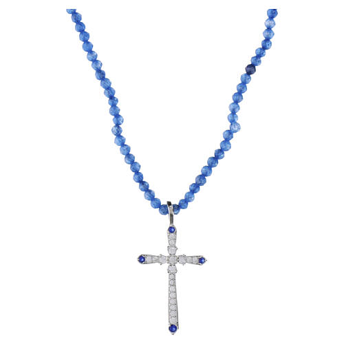 Collar cuentas azules cruz zircones blancos plata 925 Benedictus