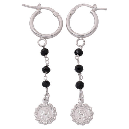 Pendientes granos negros Virgen con el Niño plata 925 rodiada Benedictus