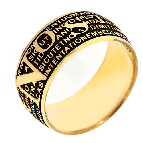 Anillo Benedictus de plata 925 dorada bruñida de la colección "Precem" con Padre Nuestro en latín inciso.Anillo realizado completamente en Italia por la empresa Benedictus que crea joyas que combinan fe y moda.Anillo disponible en varios tamaños con cofre y bolsa.