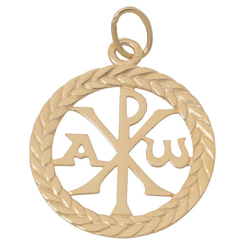 Colgante de oro amarillo 750/00 con parte anterior lúcida con el monograma de Cristo PAX, Alfa y Omega y escrita "paz" en relieve en 5 idiomas en la parte posterior.Colgante con certificado de garantía, cofre y bolso realizado por orfebres italianos de una empresa con décadas de experiencia.Peso de la joya: 2,85 gramos.