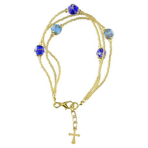 Pulsera 3 vueltas perlas vidrio Murano 5 mm acabados oro plata azul