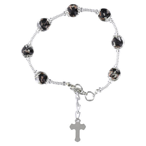 Pulsera con perlas negras de vidrio de Murano 8 mm acabado plata cruz