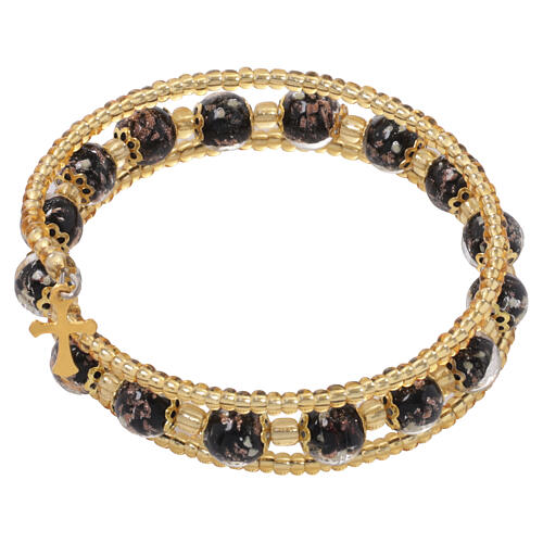 Pulsera de vidrio de Murano 8 mm negro con elementos dorados