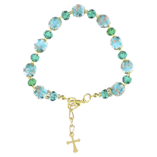 Pulsera perlas Murano 10 mm verdes y cristales Bohemia 5 mm en acabado dorado