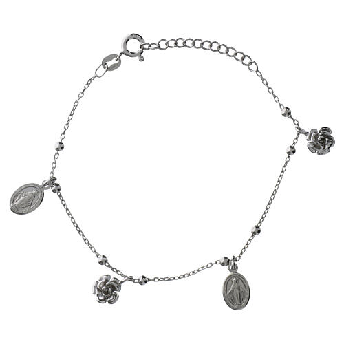 Pulsera con esferas de 9 mm y una pequeña medalla colgante con Santa Rita y zircones negros cerca del gancho como cierre.Pulsera de plata 925 para mujeres realizada en Italia por una empresa especializada en la creación de joyas.Peso de la joya: 6,55 gramos.