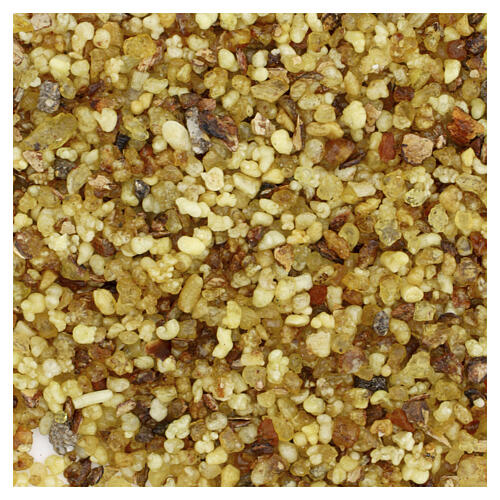500 g de granos de incienso compuestos por olíbano, mirra y benzoína (fragancia terrosa con notas aromáticas amaderadas).