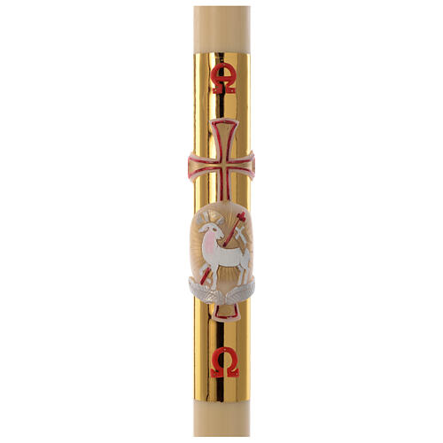 Cirio Pascual cera de abeja cordero y cruz fundo dorado 8x120 cm