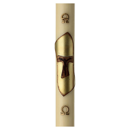 Cirio pascual marfil cera de abejas 120x8 cm con símbolo Tau sobre pergamino