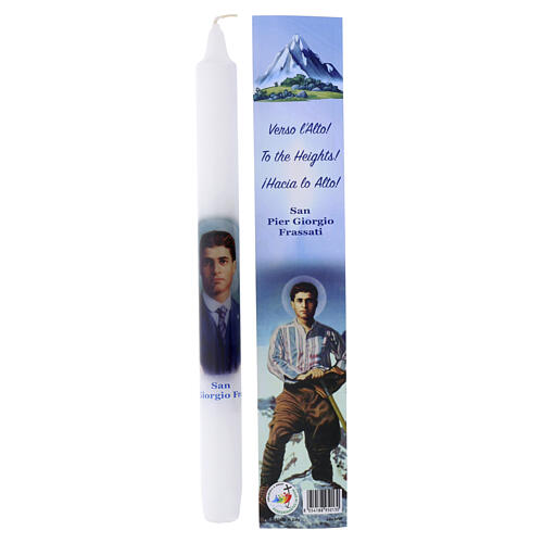 Vela de 25 cm de parafina blanca con la imagen de San Pier Giorgio Frassati.