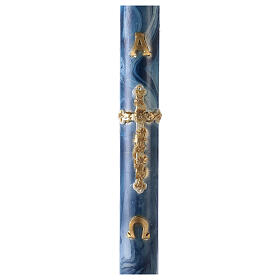 Cirio Pascual Alfa Omega Cruz dorada Veteado azul 120x8 cm