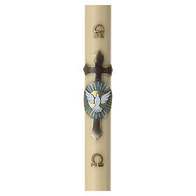 Vela pascual con cruz dorada y arco íris 400x60 mm en cera de abeja