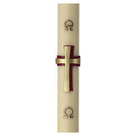 Cirio pascual Cruz roja oro Alfa Omega 80x8 cm cera abejas