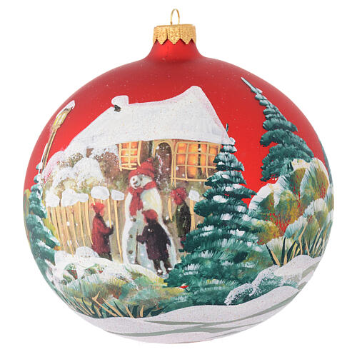 Bola de Navidad vidrio rojo decoupage muñeco de nieve 150 mm