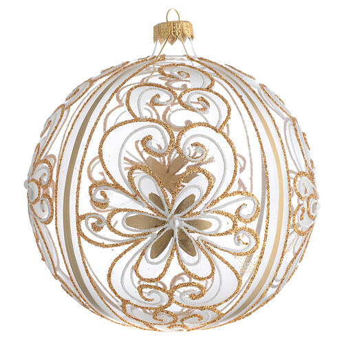 Bola de Navidad vidrio soplado oro y blanco 150 mm