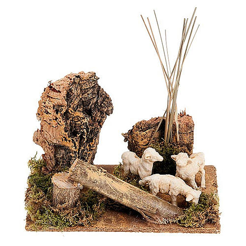 Ovejas y plantas para el belén de corcho y musgo. Todo hecho en Italia.