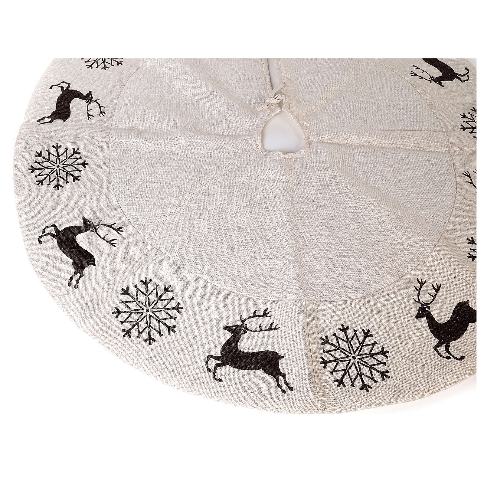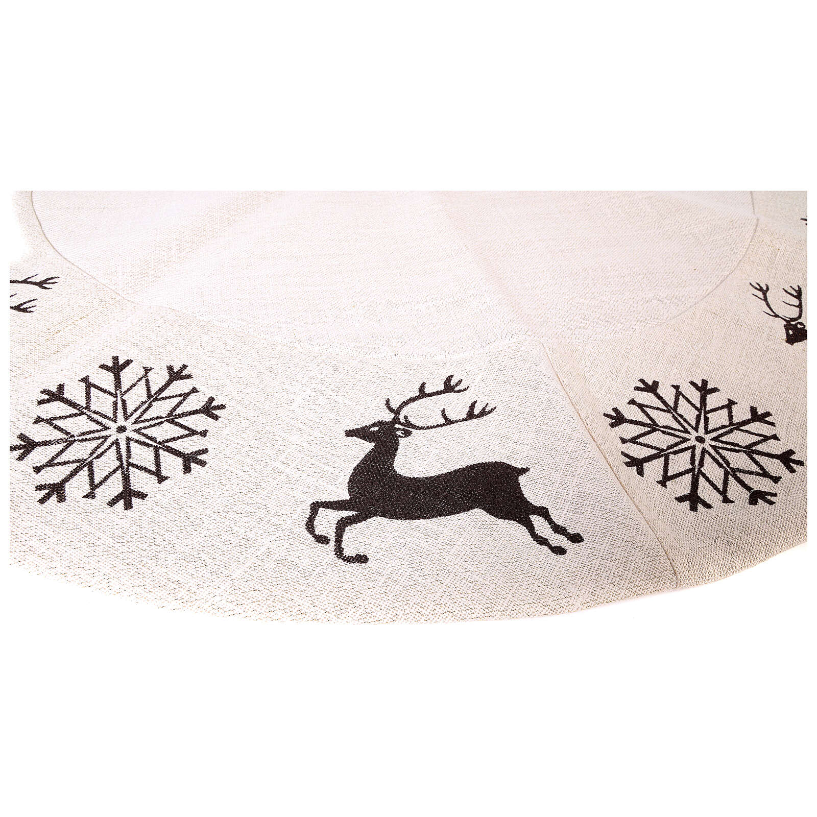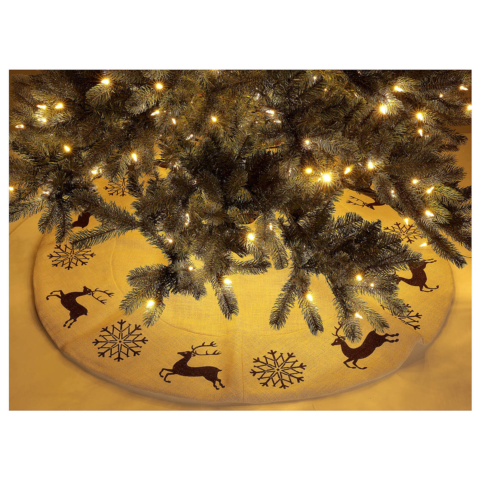 Falda cubre base Árbol Navidad ciervo copos nieve d. 1,20 cm lurex algodón
