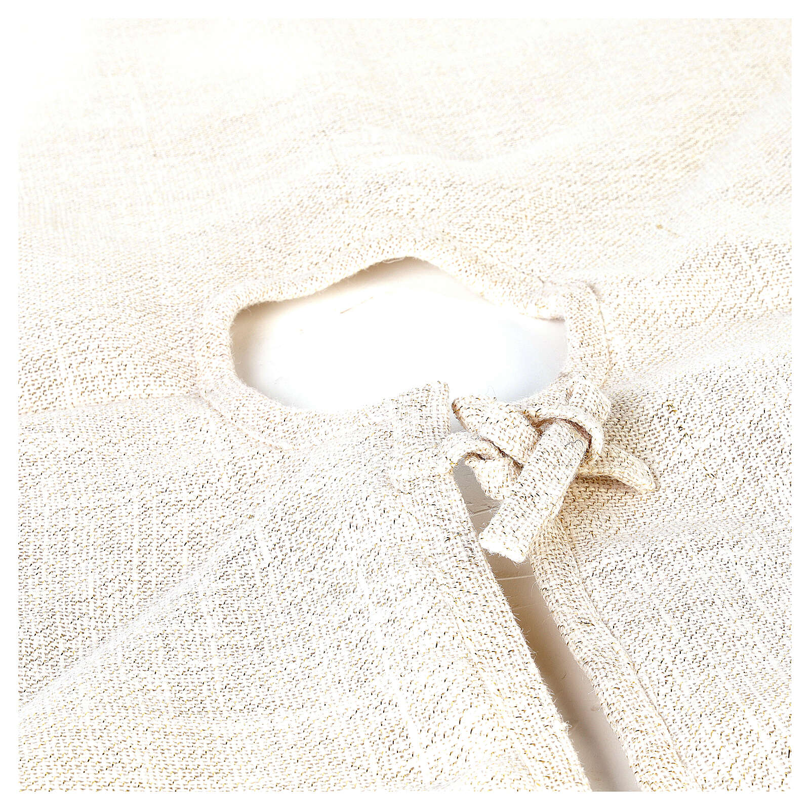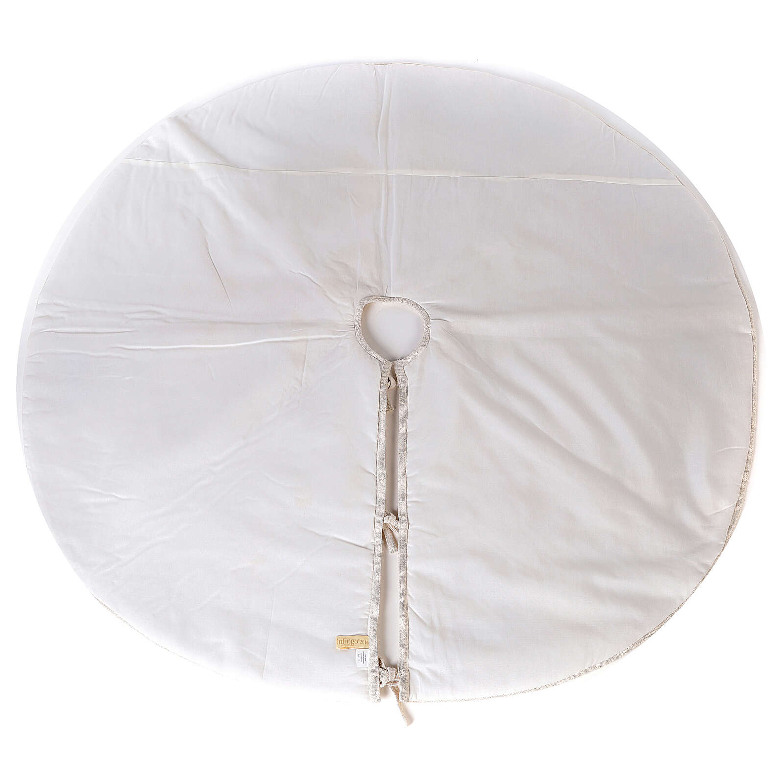 Falda cubre base para Árbol de Navidad de 1,20 cm de diámetro de lurex, poliéster y mullido de 100% algodón con apertura y cordones.