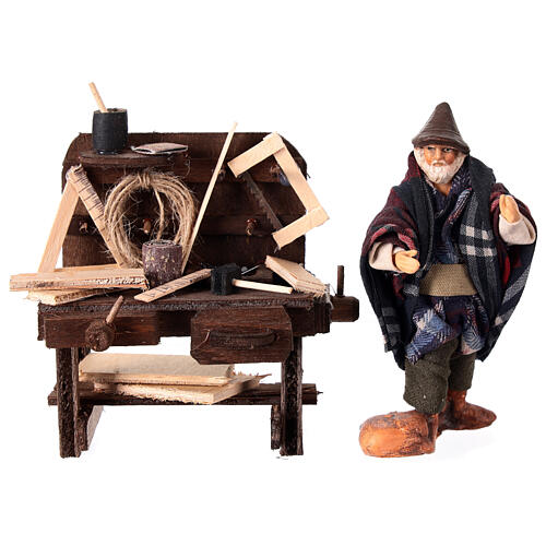 Banco de trabajo del carpintero de terracota para belén napolitano de 10 cm y realizado artesanalmente a mano en Italia.