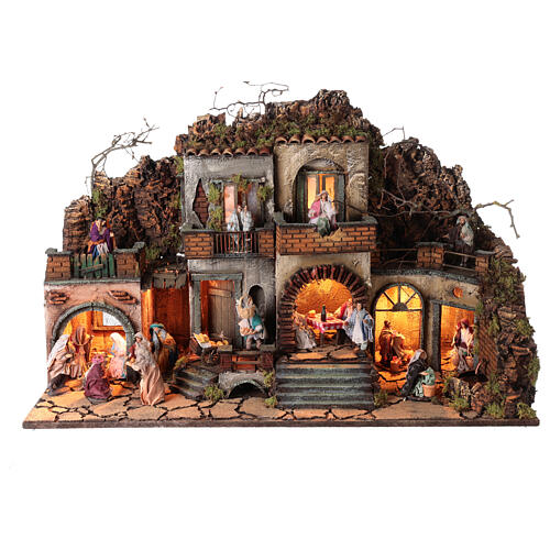 Belén napolitano 10 cm pueblo fuente movimiento Natividad 60x80x35 cm MÓDULO I