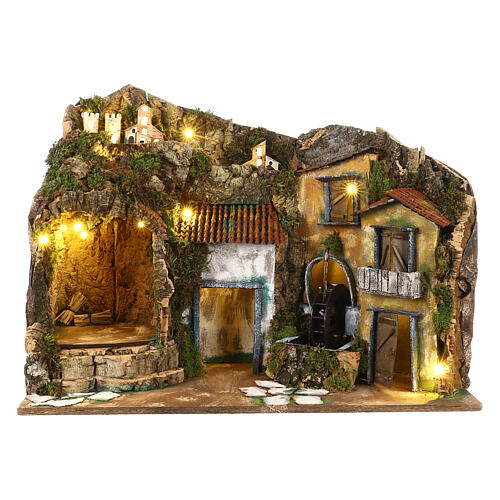 Belén napolitano 45x60x35 cm con molino estatuas 10 cm