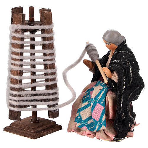 Hiladora con huso (instrumento clásico para hilar) para belén napolitano de 8 cm.