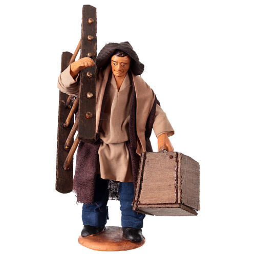 Hombre con escalera y caja de herramientas para belén napolitano de 13 cm.