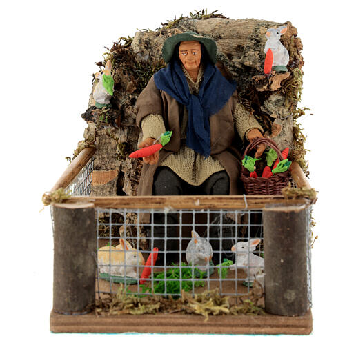 Hombre ganador de 15x10x15 cm de terracota con recinto, conejos, zanahorias y vestidos de tela realizado a mano con gran cuidado de los detalles por artesanos belenistas napolitanos.El movimiento del brazo se activa al conectar la estatua a la toma de corriente.Accesorio ideal para belén napolitano de 12 cm de altura media (la altura media es la altura de una figura humana de pie; la altura real de la figura es en proporción).Cada pieza es única y original porque realizada con materiales de alta calidad en disponibilidad limitada, por eso puede resultar un poco diferente del objeto en la foto.