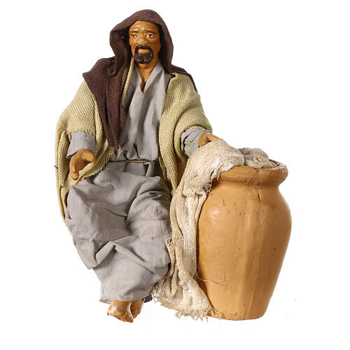 Hombre sentado cerca de una ánfora para belén napolitano de 15 cm.