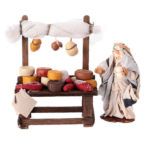 Figura que representa a un vendedor de embutidos con su mostrador, ideal para enriquecer el belén.