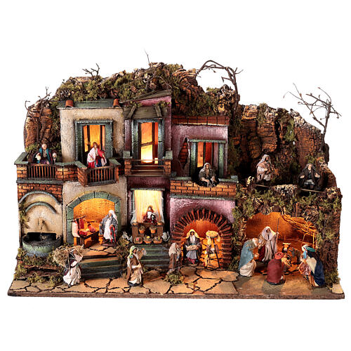 Pueblo belén estilo 700 Nápoles 10 cm Natividad fuente 60x80x35 cm MÓDULO II