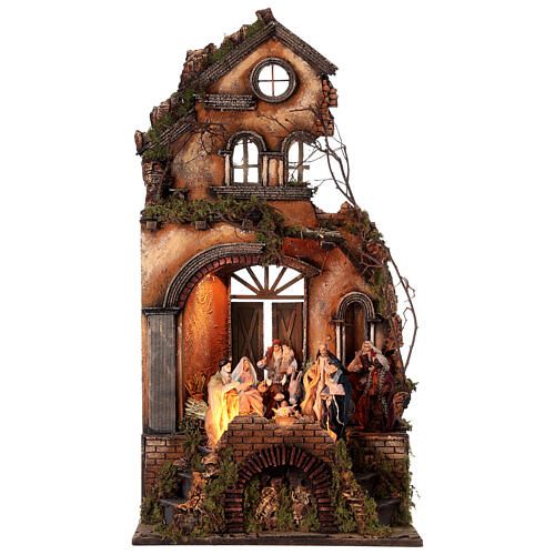 Templo de 80x40x40 cm con Natividad, Reyes Magos y luces para belén napolitano, ideal para estatuas de 13 cm.