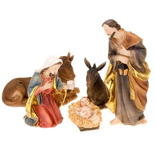 Pesebre compuesto por 5 piezas con San José de cm 22 en resina ligera, similar a la madera, pintado a mano en estilo clásico.