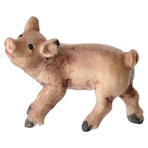 Cerdito de pie de madera tallada y pintada a mano con métodos tradicionales por artesanos expertos de la Val Gardena para belén Kostner de 9,5 cm de altura media (la altura media es la altura de una figura humana de pie); la altura real de la figura es en proporción.