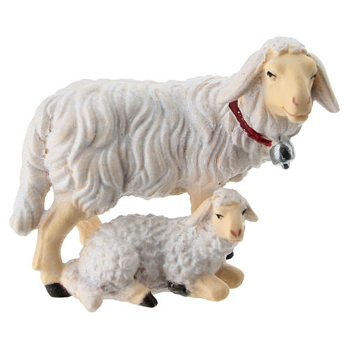 Dos ovejas Heimatland de 12 cm de madera de la Val Gardena pintadas y realizadas a mano con gran cuidado de los detalles por artesanos expertos.