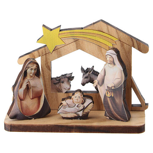 Belén madera 5 cm con cabaña y Sagrada Familia impresa
