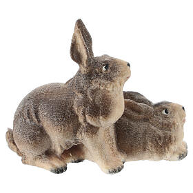 Grupo conejos madera pintada belén Rainell 9 cm Val Gardena