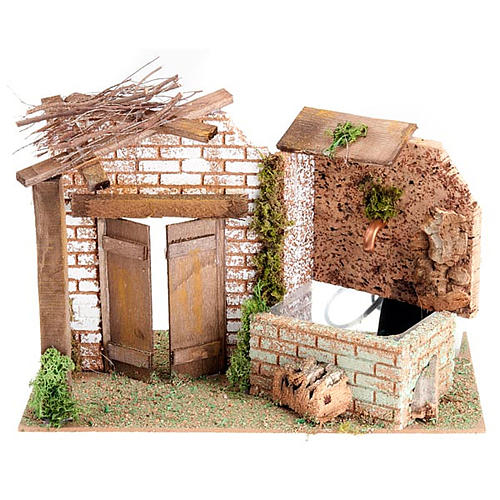 Fuente pesebre eléctrcia con techo y puerta 6watt