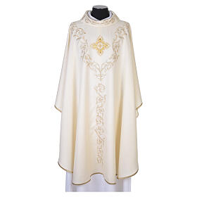 Casulla 100% lana con cruz barroca y detalles florales dorados Gamma