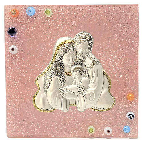 Cuadrito rosa boda de vidrio de Murano con Sagrada Familia