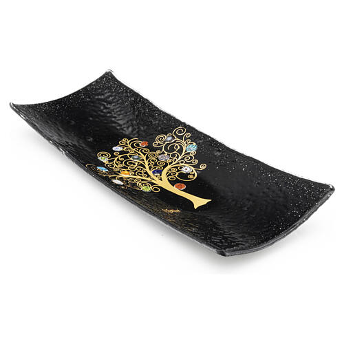 Vaciabolsillos de 5x15x30cm de vidrio negro decorado con el Árbol de la Vida de oro puro y murrinas multicolores de vidrio de Murano.