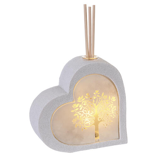 Perfumador de ambientes en forma de corazón con iluminación LED y decoración del Árbol de la Vida.