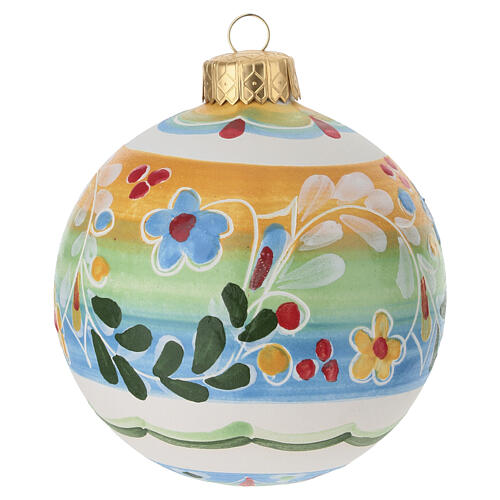 Bolita pascual boreal de 10x8 cm de terracota esmaltada con decoración floral de efecto boreal, pintada a mano y elaborada en Italia.