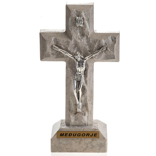 Cruz Medjugorje en mármol con el cuerpo de cristo en metal. Hecha por artesanos de Medjugorje.