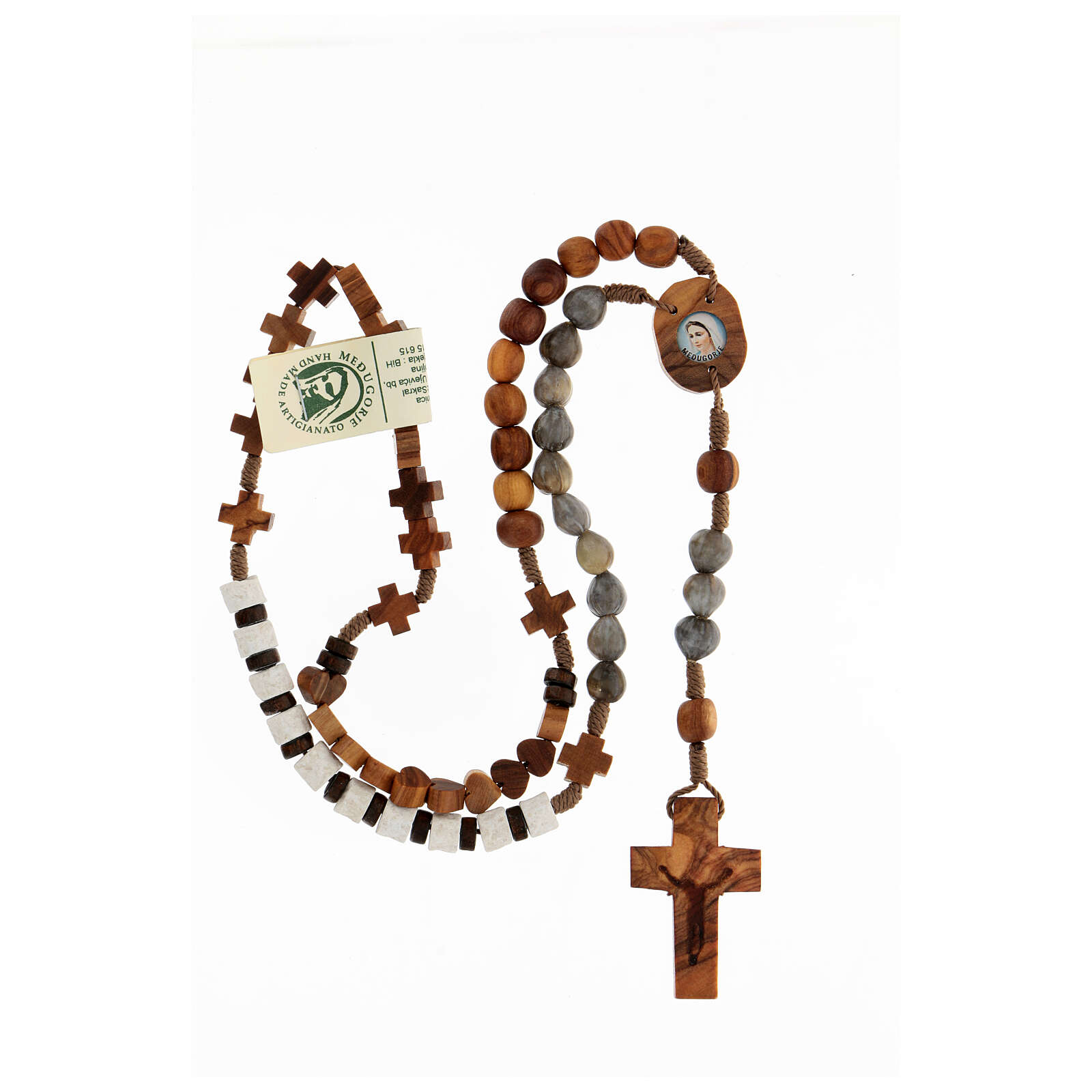 Rosario cuerda decenas granos mixtos olivo cuerda Medjugorje