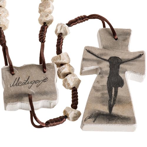 Rosario de pared con la imagen de Jesús Resucitado de Medjugorje. Realizado totalmente a mano por artesanos de Medjugorje con materiales de Medjugorje.