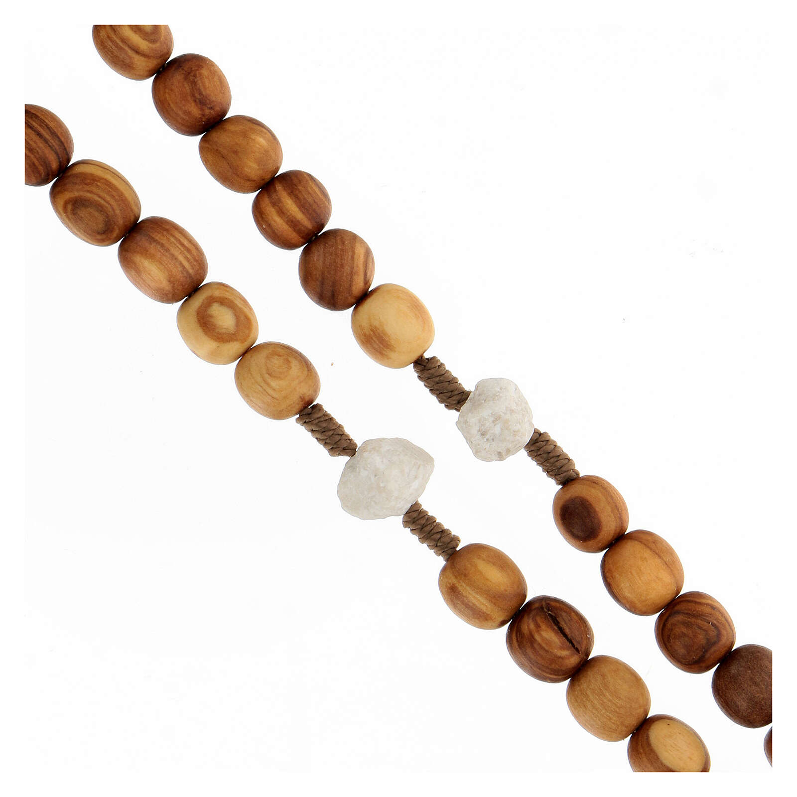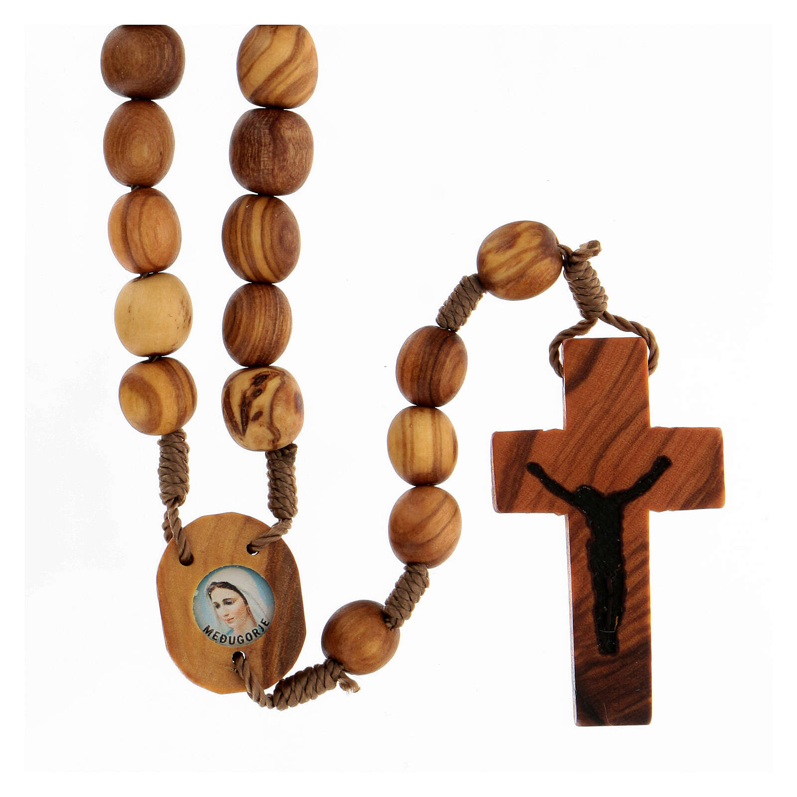 Rosario madera olivo granos 9 mm piedra Virgen Medjugorje