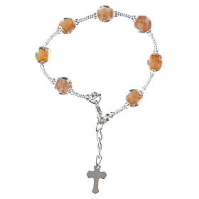 Pulsera beige con perlas vidrio Murano 8 mm acabado plateado