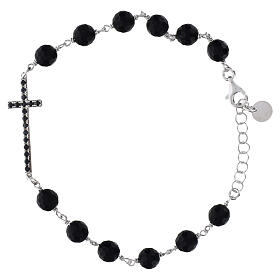 Pulsera granos ónix cruz con zircones negros Benedictus plata 925 rodiada