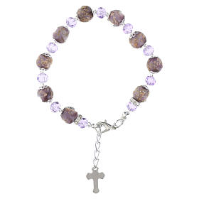 Pulsera perlas vidrio Murano lila con cristales 5 mm acabado plata